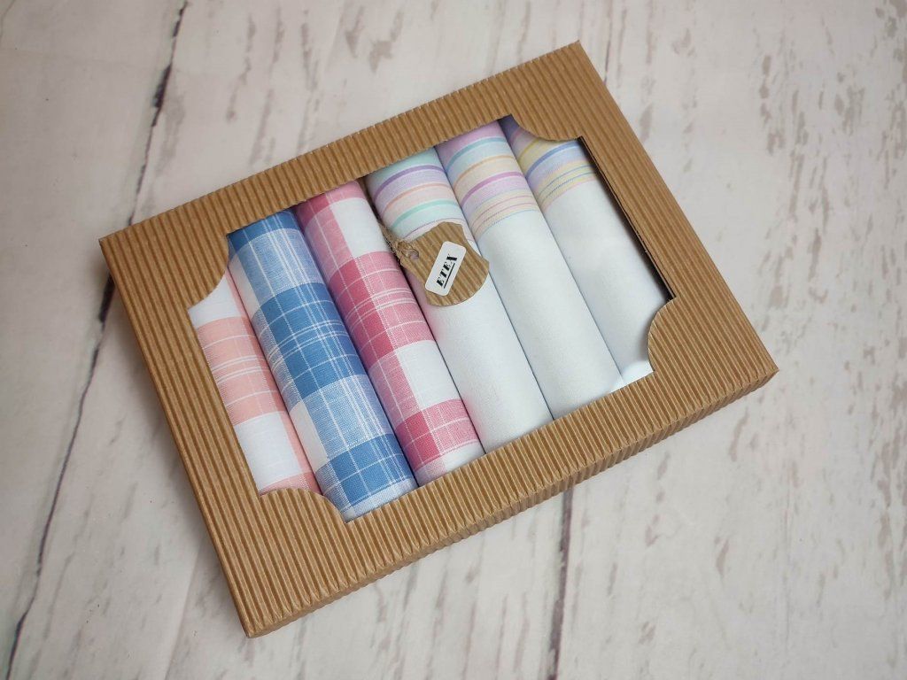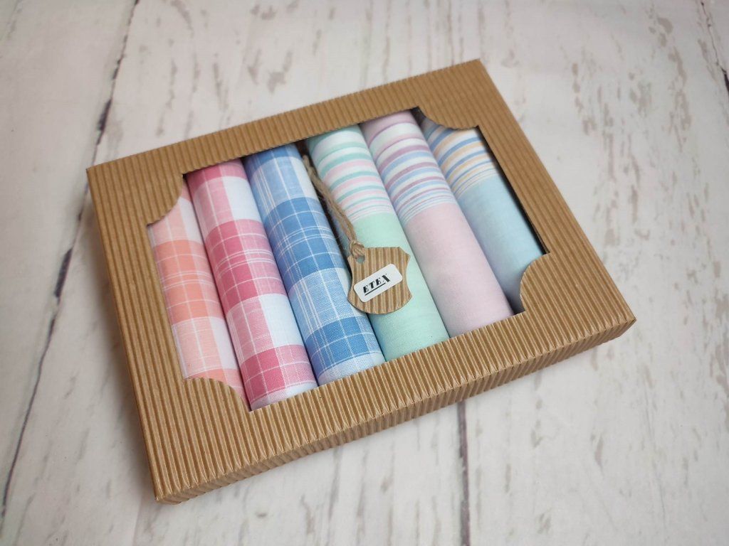 Dámské kvalitní kapesníky v dárkové eko krabičce tradiční české výroby. Veškeré kapesníky jsou vyrobeny z těch nejkvalitnějších a zdravotně nezávadných materiálů.