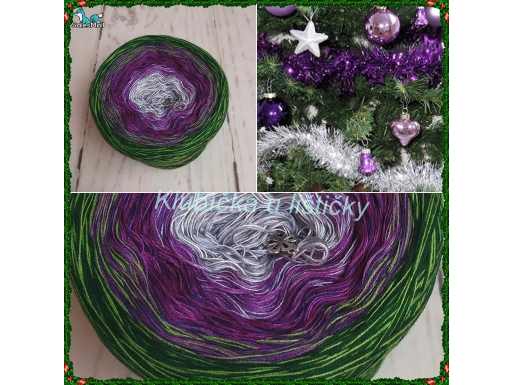 V tomto klubíčku jsou od středu barvy:bílá+ocelovo šedá+cínová,oleandr,ostružinová,fialová,trávová zelená a vánoční zelená