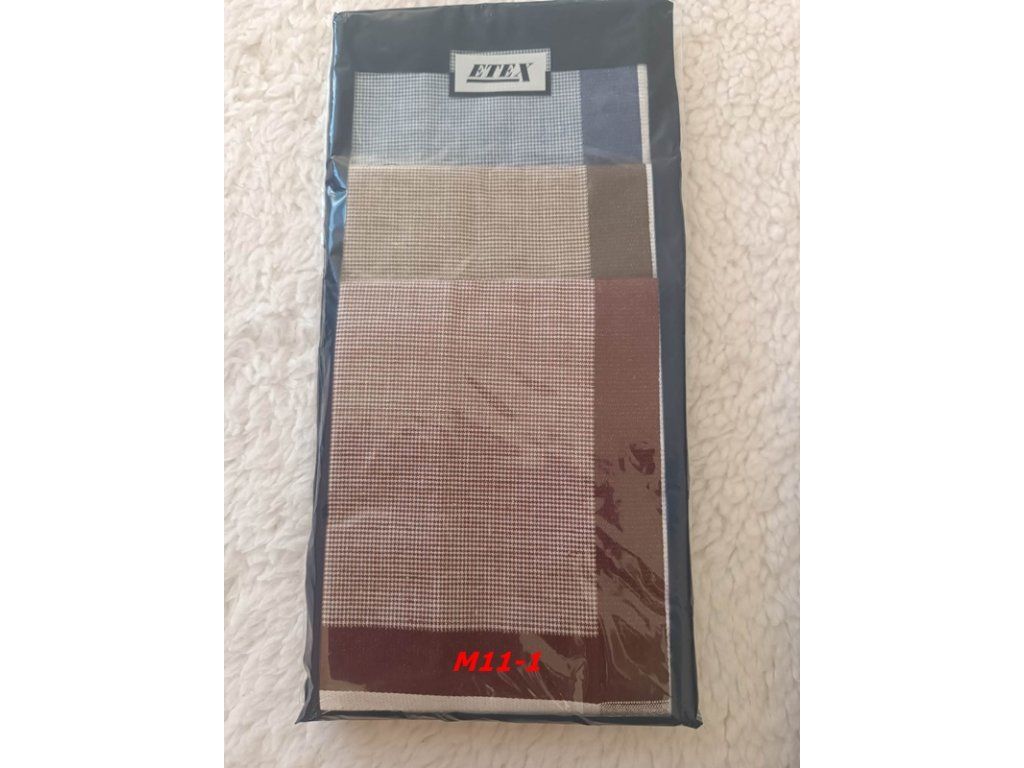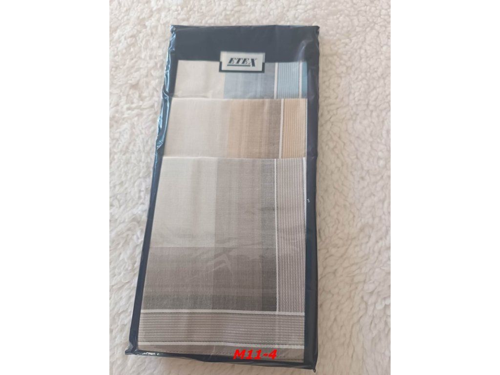 Balení obsahuje šest kusů různě barevných pánských kapesníků o velikosti 40 cm x 40 cm. Velmi kvalitní kapesníky z česané příze.