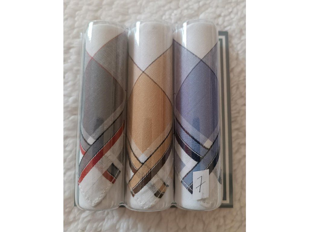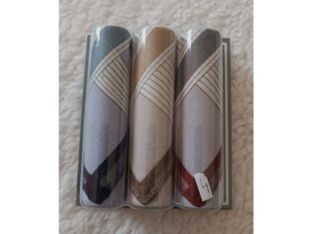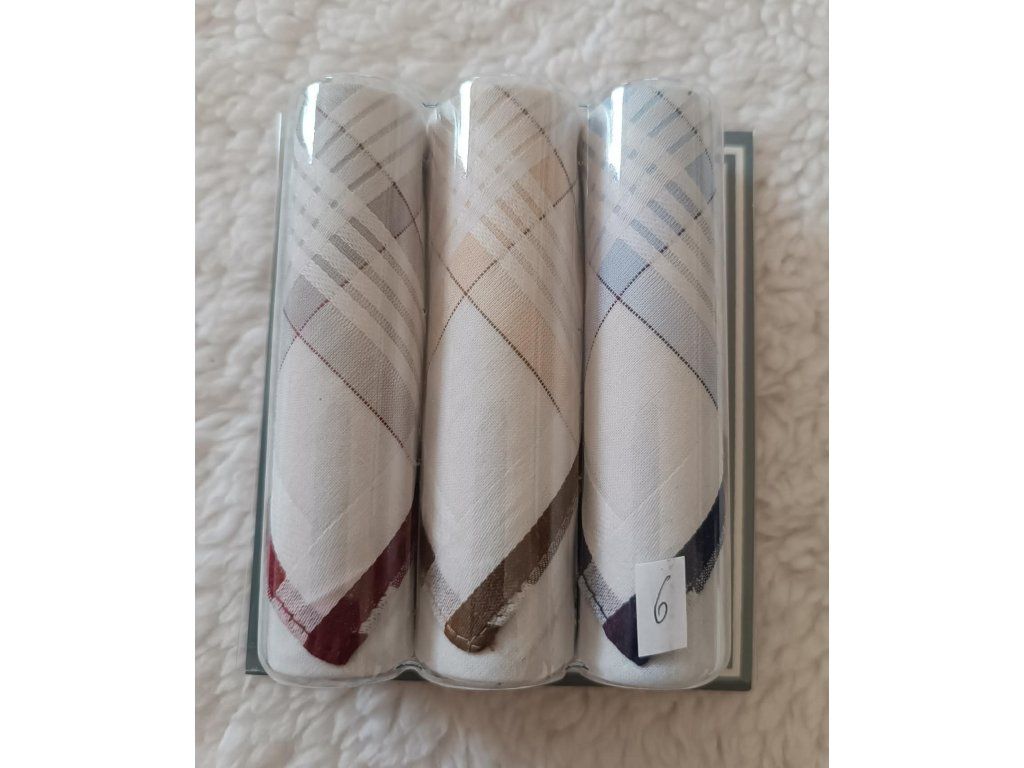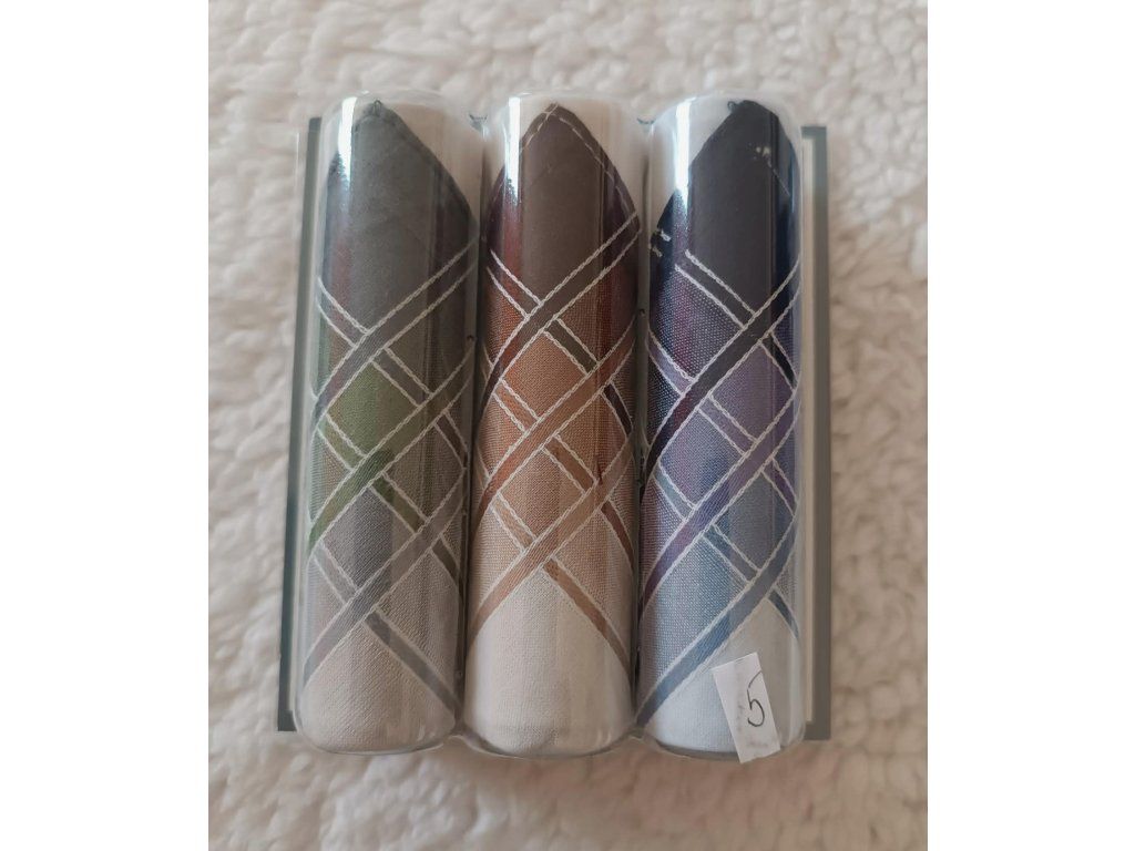 Pánské kapesníky M13 světlé z kvalitní 100% bavlny představují praktickou a hygienickou volbu pro každodenní použití. Tmavé provedení, vysoká savost a možnost praní až na 95 °C zajišťují dlouhou životnost i maximální čistotu. Balení obsahuje 3 kusy kapesníků v různých vzorech uložených v dárkové krabičce.