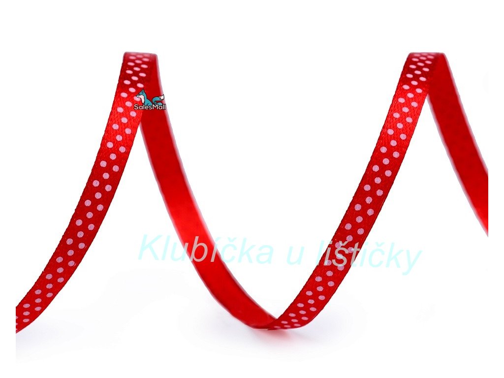 Saténová stuha s puntíky 6mm - červená -1m