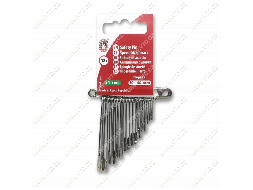 Špendlík zavírací nikl na kartě -9 velikostí.